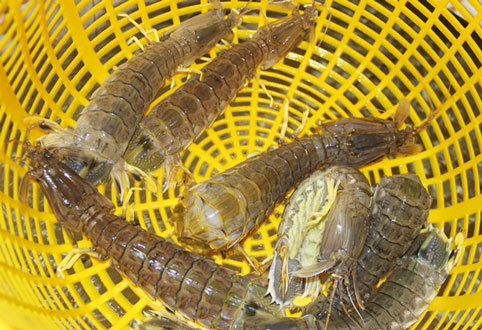 Mùa này, ghe biển cập bến thường chở về tôm tít tươi sống to bằng bắp tay để bán vào các nhà hàng tại TP Cà Mau.