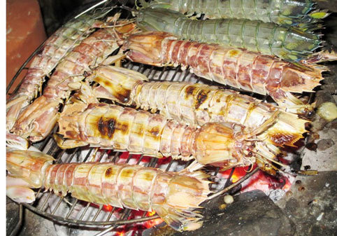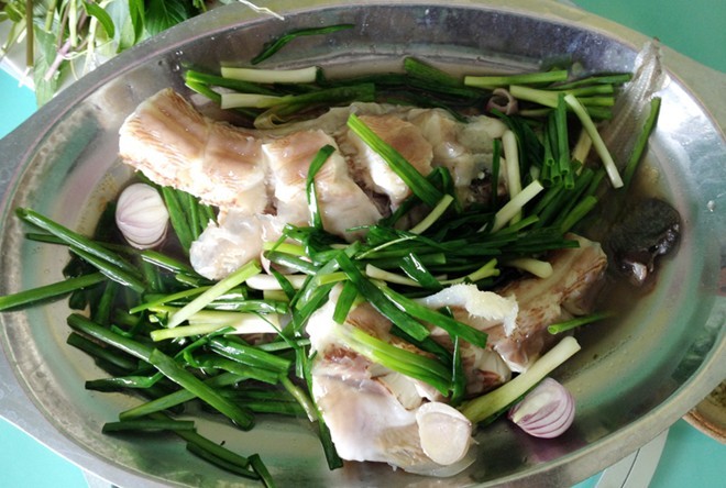 Một loại cá khác cũng được nướng muối ớt là cá lăn, ăn kèm rau sống rất thơm ngon.