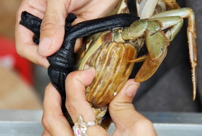 Cua gạch Cà Mau loại 2 con/kg giá 350.000 đồng/kg. Trong khi đó giá cua thịt chỉ dao động từ 220.000 - 250.000 đồng/kg.