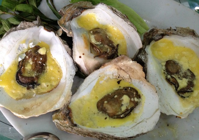 Nhà hàng thường phục vụ khách món cháo hàu, hàu nướng mỡ hành, phô mai.